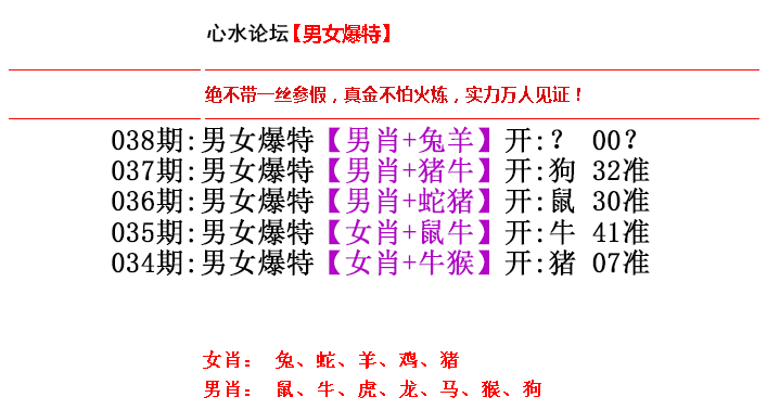 五行生肖属性:【金肖】猴鸡 【木肖】虎兔 【水肖】鼠猪 【火肖】蛇马 【土肖】牛羊龙狗 |